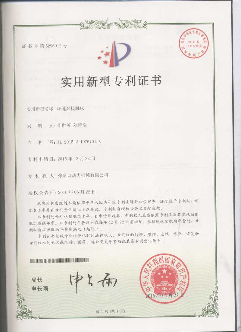 Õżҿڶ¯Îñ»úеÓÐÏÞ¹«Ë¾×¨ÀûÖ¤Êéչʾ